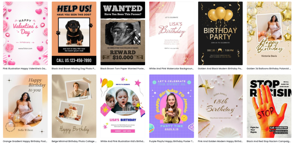 - Poster Layouts: Fotor offers pre-built layout options for your posters that allow you to customize as needed.