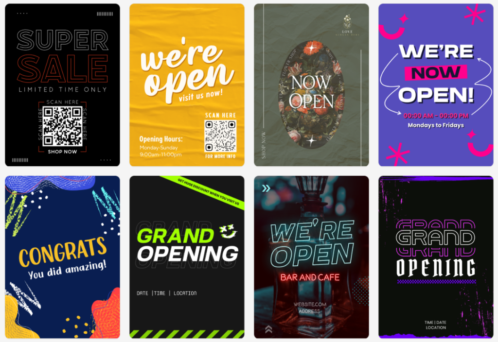 In addition to being able to create professionally-designed posters, Design.com also offers 50+ additional branding tools, including websites, digital business cards, social media posts, presentations, QR codes, flyers, menus, and letterheads.